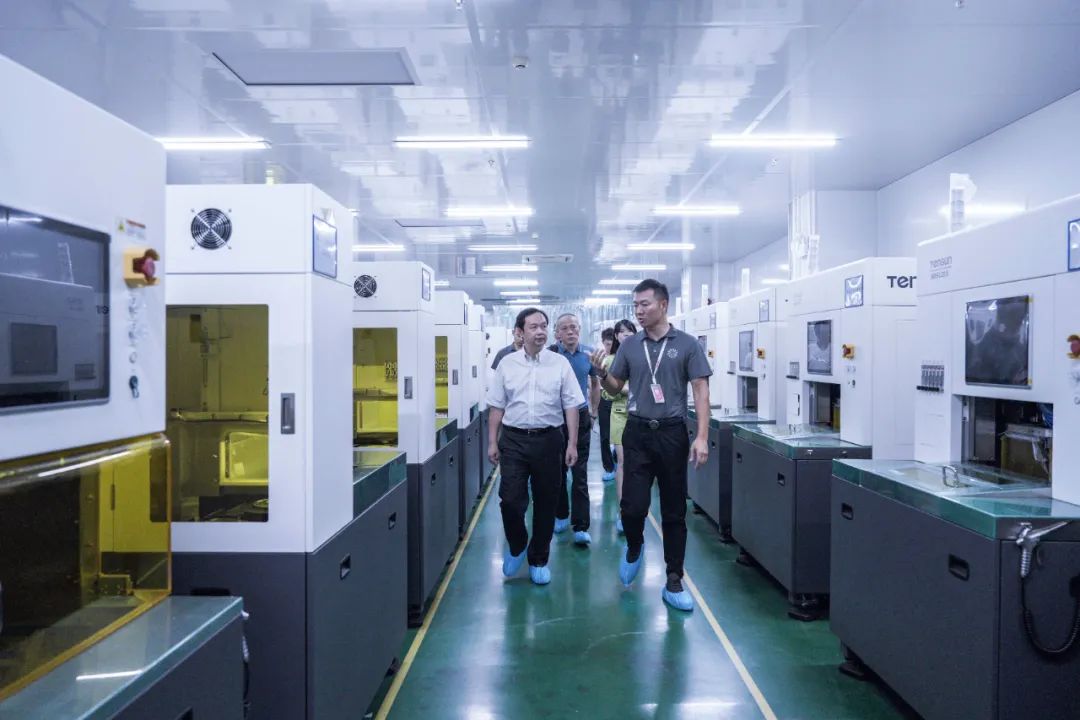 隨后,騰盛總裁盧國明、副總裁盧國藝陪同信科董事長羅欣一行來到生產(chǎn)車間,了解公司在3C、半導(dǎo)體、新型顯示方面的最新技術(shù)和產(chǎn)品。董事長羅欣表示:“看到學(xué)生們在這樣時刻引領(lǐng)科技創(chuàng)新的崗位上實習(xí)、磨煉,我們很放心?!?/span>