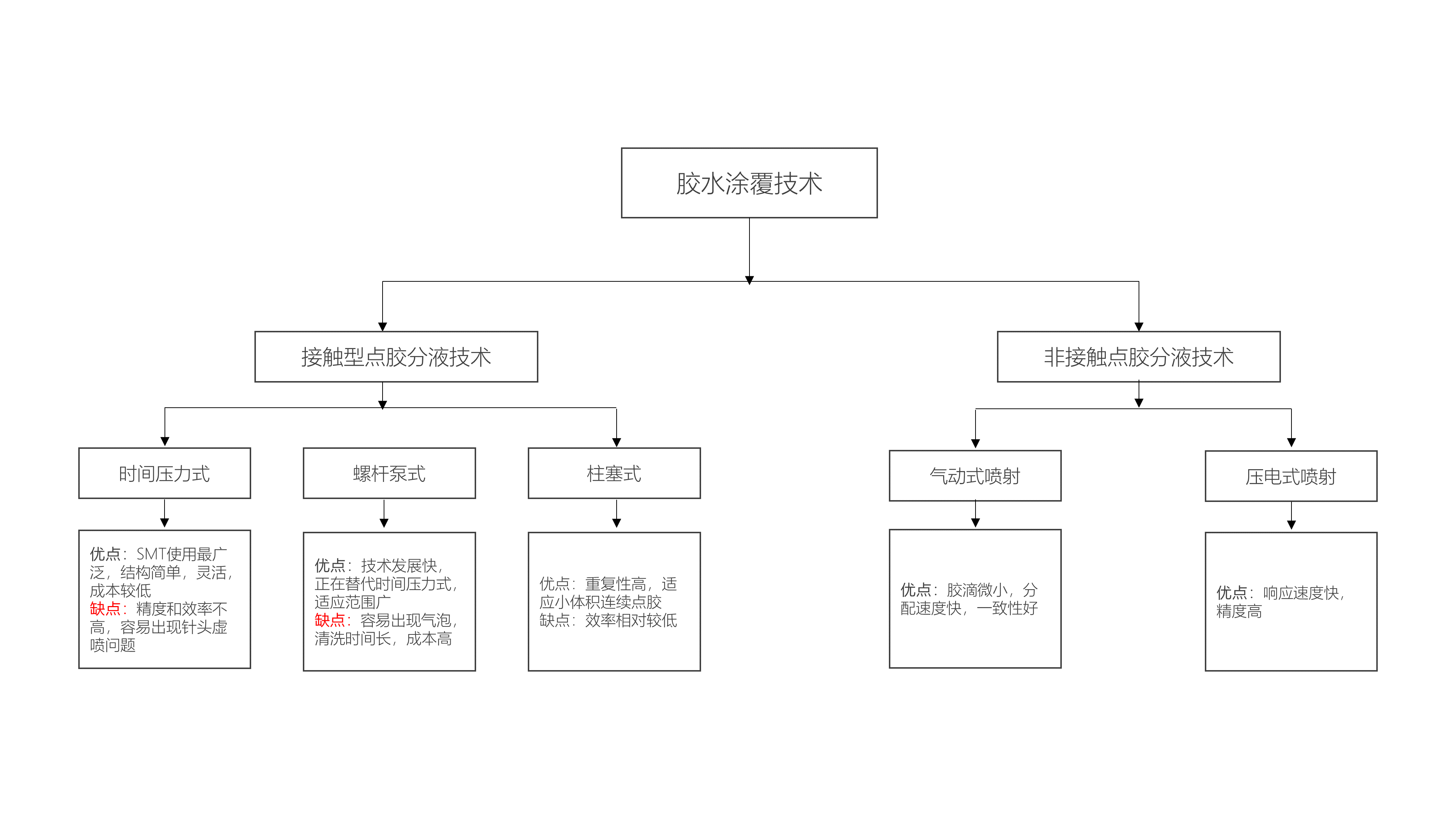 微電子封裝工業(yè)中主要有點(diǎn)、線(xiàn)、面三種點(diǎn)膠涂覆技術(shù),即可分為接觸式點(diǎn)膠、非接觸式點(diǎn)膠。
